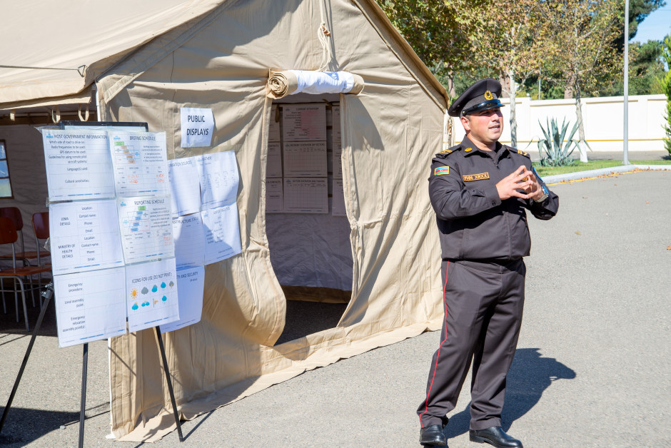 Tədbir zamanı “Beynəlxalq Axtarış-xilasetmə və Məşvərət Qrupunun (İNSARAG)” təlimatları əsasında tərtib olunan sənədlər, həmçinin humanitar əməliyyatlar zamanı “Virtual Sahə Əməliyyatlarının Koordinasiya Mərkəzi (VOSOCC)”, “İNSARAG Koordinasiya və İdarəetmə Sisteminin (İCMS)” imkanları və iş prinsipləri, beynəlxalq humanitar əməliyyatlar zamanı idarəetmənin təşkili barədə iştirakçılara geniş məlumat verilib. Eyni zamanda, Muğan Regional Mərkəzinin ərazisində zəruri sənəd və avadanlıqlarla komplektləşdirilmiş “Şəhər Əməliyyatlarının Koordinasiya Mərkəzi (UCC)”-nin və “Qəbuletmə-yolasalma Məntəqəsi (RDC)”-nin iş prinsipləri həm nəzəri, həm də praktik şəkildə izah edilib.