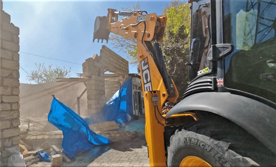 Fövqəladə Hallar Nazirliyi tərəfindən daha bir qanunsuz tikili sökülüb (video, foto)